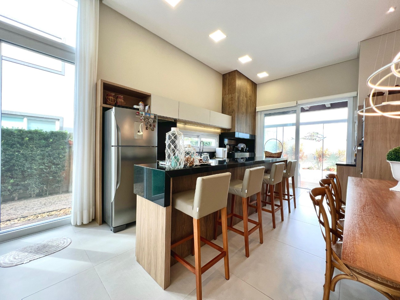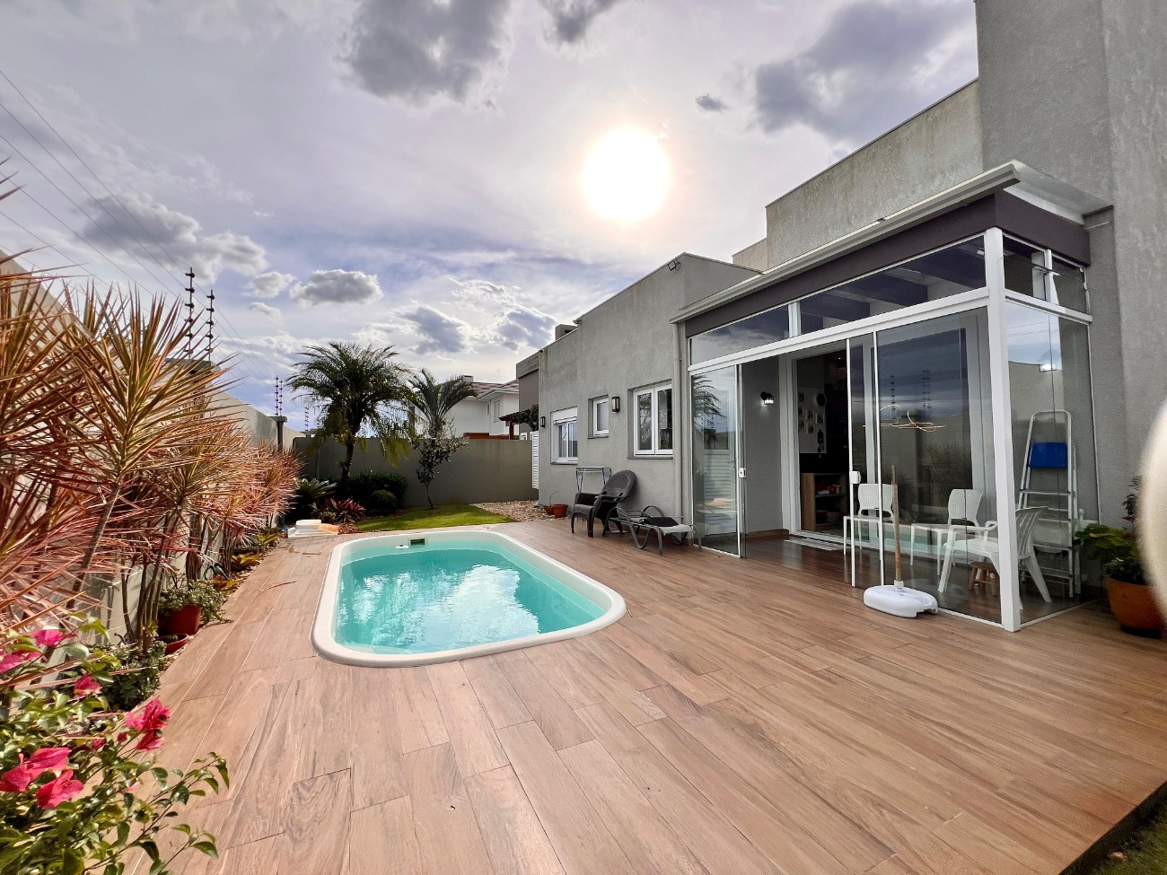Novíssima casa térrea de alto padrão à venda no Condomínio Quintas do Lago – Xangri-Lá Residência recém-construída, projetada para oferecer conforto, sofisticação e integração com a natureza. São 180 m² de área privativa, edificados sobre um amplo lote de 450 m², com excelente aproveitamento dos espaços e acabamento de alto nível. O imóvel conta com 4 dormitórios, sendo 2 suítes e 2 semissuítes, proporcionando praticidade e privacidade para toda a família. A área social possui cozinha em conceito aberto, integrada ao living, além de espaço com churrasqueira, ideal para receber convidados. Totalmente mobiliada, decorada e climatizada, a casa está pronta para uso imediato. Dispõe ainda de lavabo, lavanderia, sistema de placas fotovoltaicas, reforçando o conceito de sustentabilidade e economia. Na área externa, destaque para a piscina privativa, perfeita para momentos de lazer e descanso. O projeto arquitetônico e os acabamentos refletem bom gosto, qualidade e atenção aos detalhes, tornando este imóvel uma excelente opção para quem busca viver com exclusividade em um dos condomínios mais valorizados de Xangri-Lá.