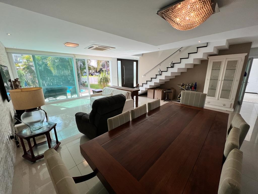 Residência de alto padrão em condomínio completo! Com 260m² de área construída, esta casa oferece conforto, sofisticação e uma arquitetura pensada para o bem-estar. São 4 suítes, incluindo uma térrea e uma master com banheira, além de lavabo, amplo living integrado em três ambientes, mobiliário de excelente padrão e garagem para até 3 carros. Nos espaços externos, destaque para o terraço, piscina aquecida, churrasqueira, pátio e um belo jardim que completa o cenário de lazer e tranquilidade. O condomínio conta com infraestrutura completa: piscinas externas e térmica, salões de festas, sala de jogos, mercado, academia, sauna, pista de skate, lago para pesca, quadras de tênis e poliesportivas, campo de futebol, cancha de bocha, praças, praia artificial e portaria 24h. Um endereço exclusivo para quem valoriza qualidade de vida, segurança e elegância em cada detalhe.